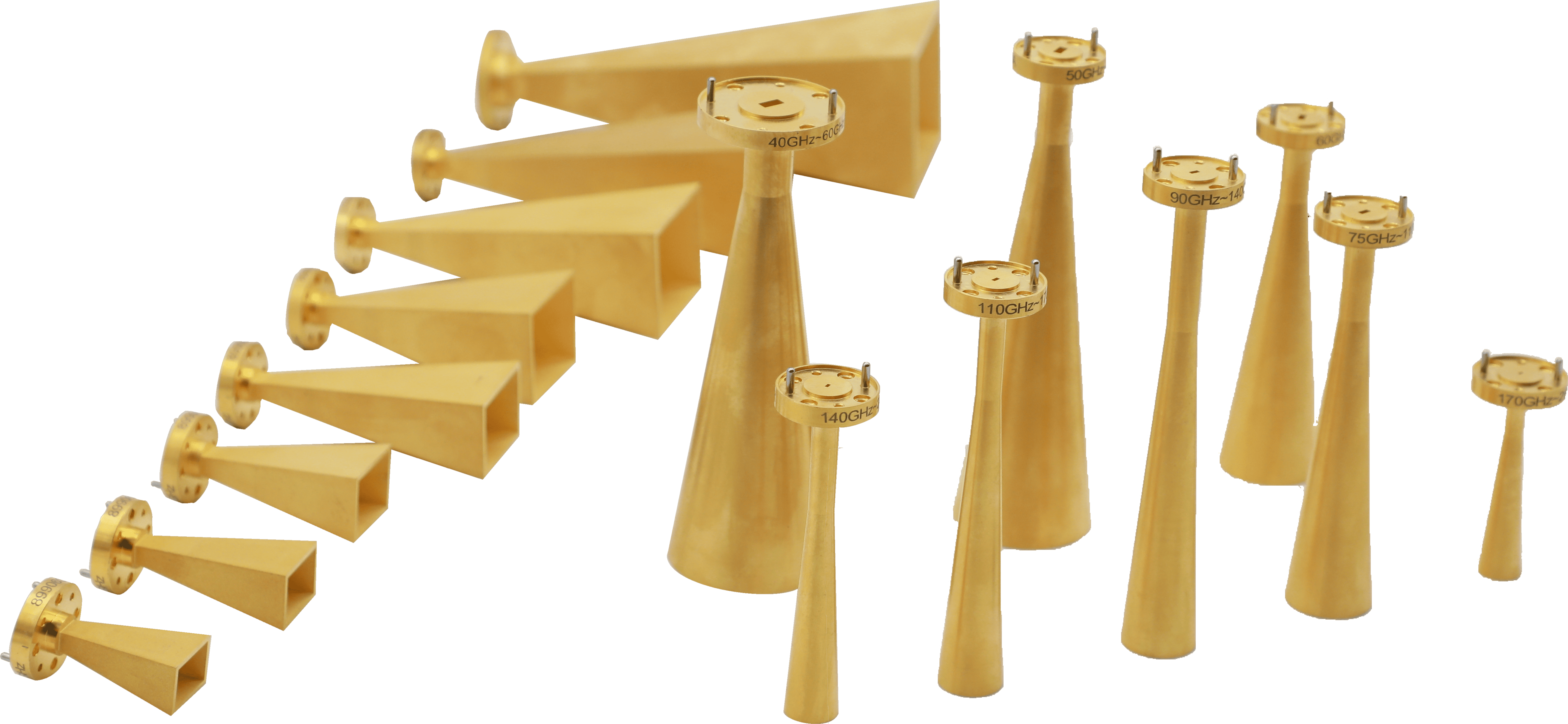 係列化太赫茲喇叭天線,共有圓錐及角錐兩種類型,頻率範圍覆蓋33GHz~1100GHz,具有(yǒu)駐波小、增(zēng)益高等特點。