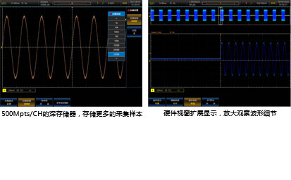 • 最高500Mpts/CH的(de)深度存儲,全硬件視(shì)窗擴展,全局與細節的同步顯示