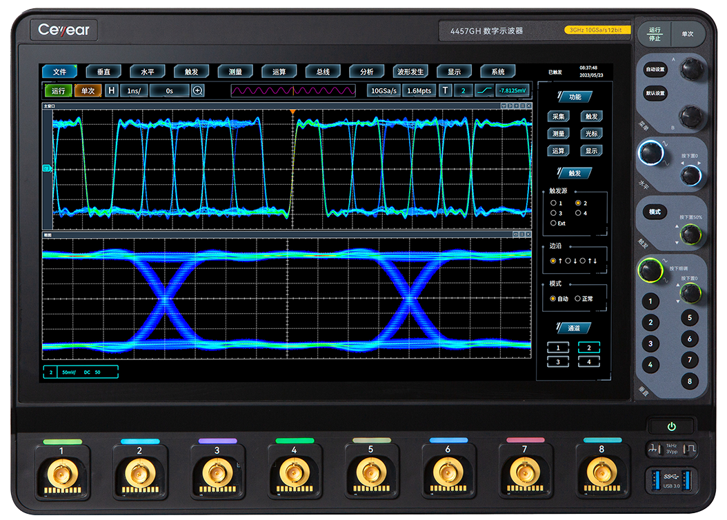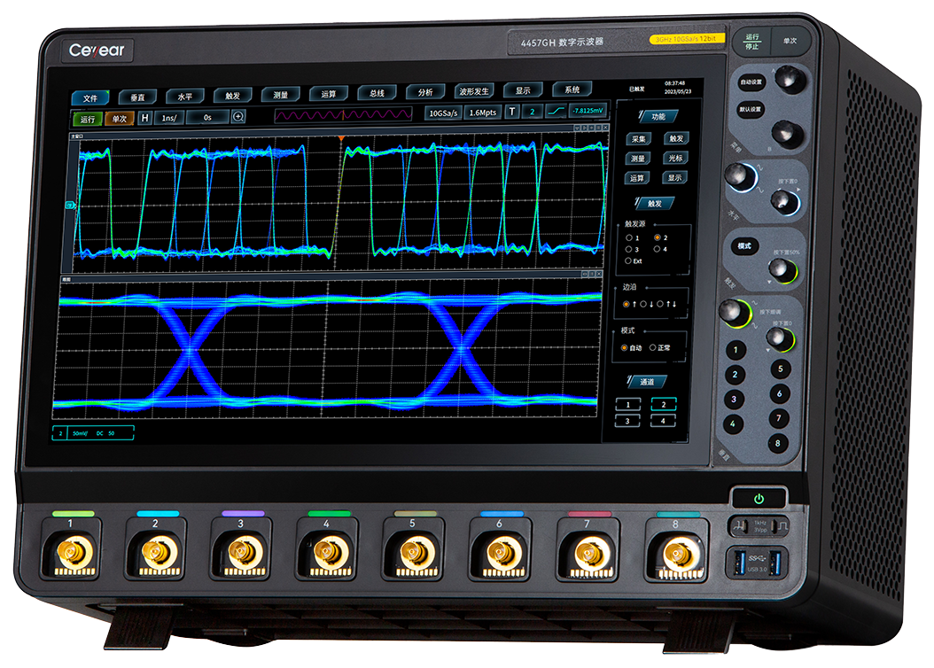 4457H係列(liè)數字示波器集示波器、邏輯分(fèn)析儀、函數發生器、總線(xiàn)分析儀、實時頻譜分析儀及(jí)數(shù)字電壓表等多(duō)種儀器於一體,具有波形自動設置、參數自動測量(liàng)與統計、光標測量、數學運算、FFT頻譜分析、波形錄製與回放、串行總線分析、極限(xiàn)模(mó)板測試、功率測量與分析、波特圖分(fèn)析、眼圖及抖動分析等功能,支持以太網程控,方便集成開發使用。