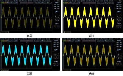4457H係列示波器采用數字熒光三維顯示技術,通過顏色的亮暗或冷暖來(lái)表示(shì)事件發生的概率,並提供正常、反相(xiàng)、色溫、光譜等4種波形色彩,增強了查看偶發事件的(de)能力。