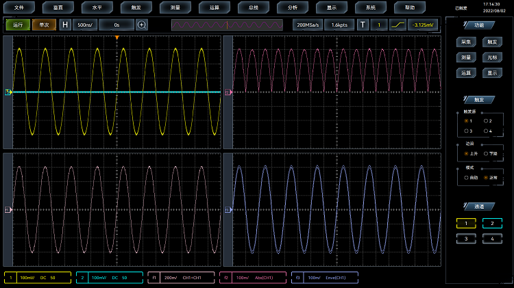 采用精確的數字觸發(fā)技術,直接對ADC采集樣本進行觸發(fā)點測定,能(néng)抑製幹擾信(xìn)號影響,迅速鎖定觸發事件,為示波器準確的顯(xiǎn)示和分析信號奠定基礎(chǔ)。數字觸發(fā)的觸發靈敏度最(zuì)高0.1格。