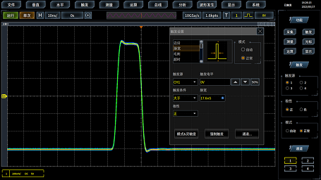 4458係(xì)列示波器采用精確的數字觸發技術,直接對ADC采集樣本進行觸發(fā)點測定,能抑製幹擾信號影響,迅速鎖定觸發事件,為示波(bō)器準確的顯示和分析信(xìn)號奠定基礎。數字觸發的觸發靈敏度最高0.1格。