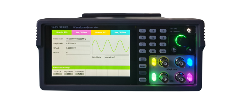 1653係列函數任(rèn)意波形發生器包含120MHz、250MHz、350MHz、500MHz和1GHz 5種帶寬機型,滿足客戶不同輸出信號頻率的信號發生需求。500MHz帶寬及(jí)以(yǐ)下型號支持2或4個輸出(chū)通道,通道之間(jiān)可耦合輸出,如CH2=CH1、CH2=~CH1,CH2=CH1+CH2等,通(tōng)道CH1、CH2及CH3、CH4可作為差分信號輸出。
