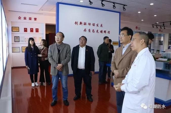領導一行讚揚了桂湖企業的防水產品,表示(shì)差(chà)異化產品很不錯,同時對桂湖企業經營規模及各方麵投入的硬件設施非(fēi)常滿意。並肯定了(le)桂湖防水在研發、生產和品質管理等方麵所作(zuò)出的努力和成果,就桂湖防水視品質為生命的(de)發展理念表示了高度認同。