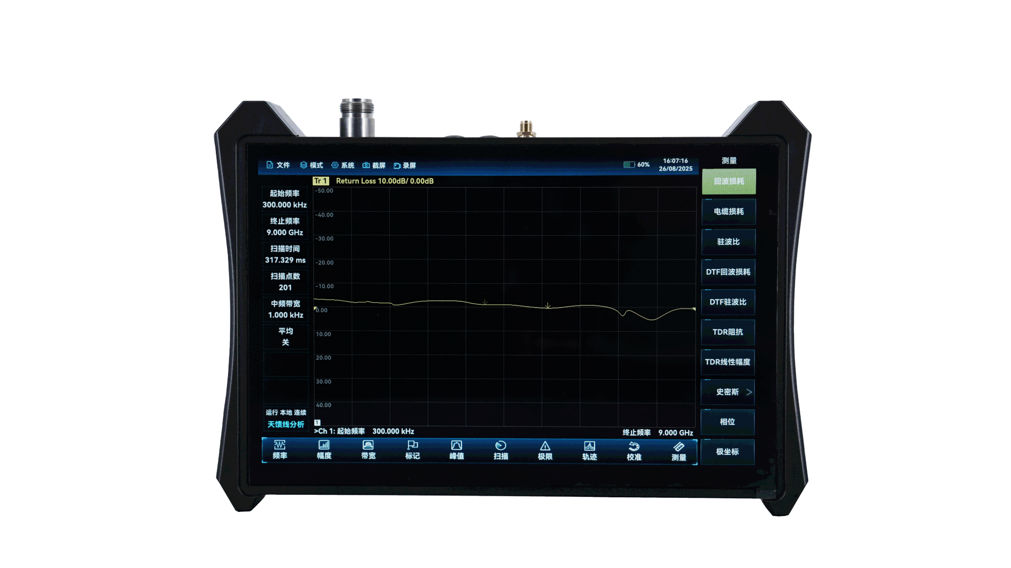 Ceyear 3681天饋線測試儀產品頻率範(fàn)圍覆蓋300kHz~9GHz,具有線纜(lǎn)損耗、駐波比、回波損(sǔn)耗等參數的測試功能,可利用(yòng)故障定位-駐波比(bǐ)或故障(zhàng)定(dìng)位-回波損耗功能對細小的(de)問(wèn)題進行定位,從而杜絕(jué)故障隱患(huàn)。