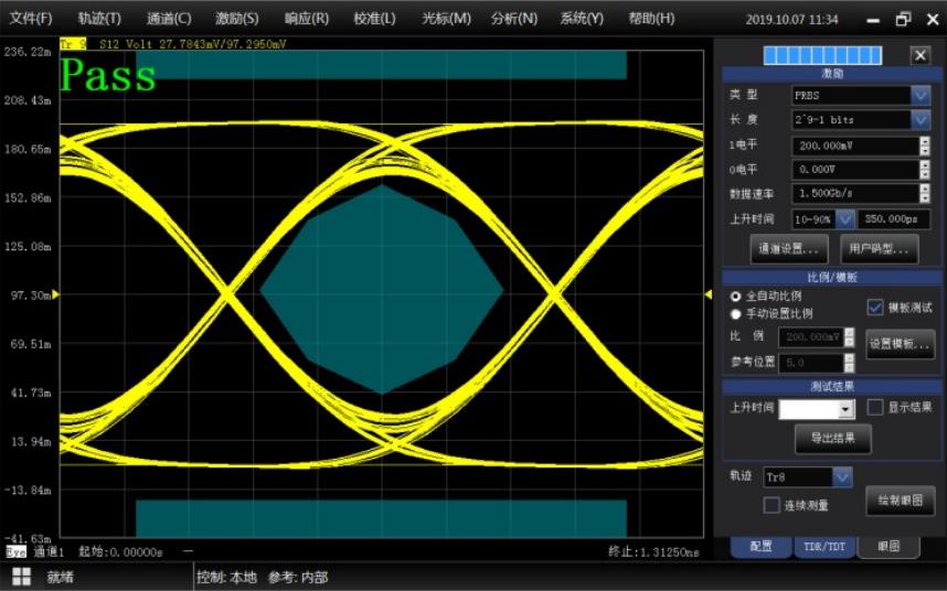 3671係列矢網的高級時域分析選件提供基於S參數的虛擬眼圖生成及分析功能。仿真碼型輸出單元用於產生0、1變化的數據位,把仿真碼型和被測件(jiàn)的(de)時域衝激響(xiǎng)應(yīng)進(jìn)行(háng)卷積,疊加後得到虛擬眼圖。