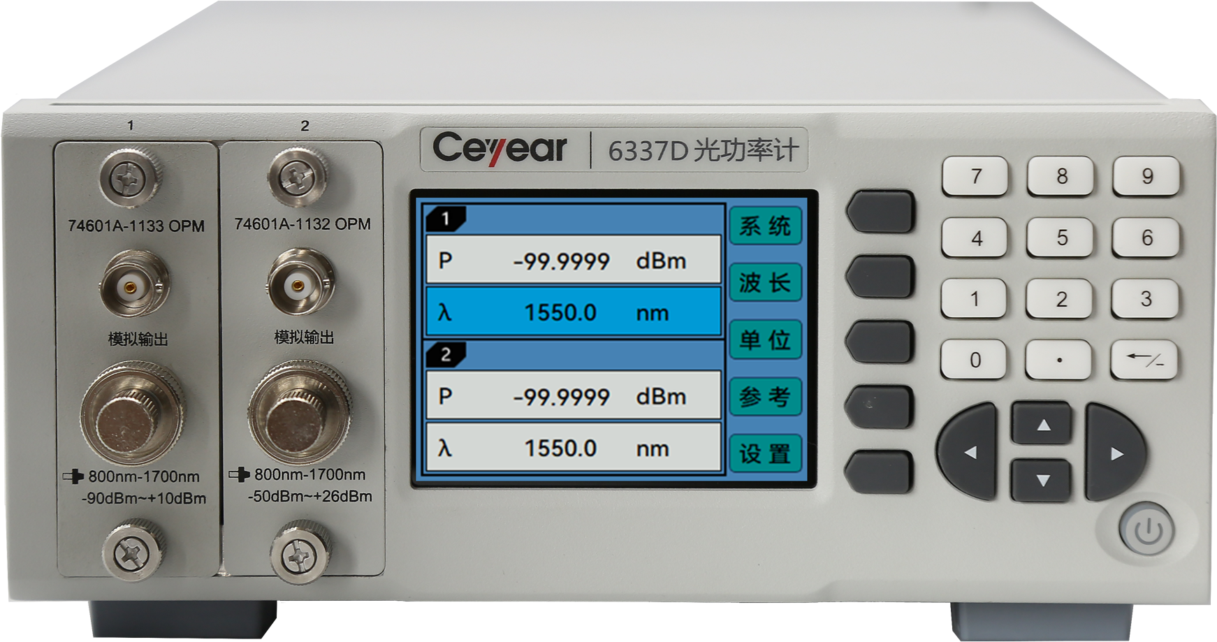 6337D光功(gōng)率計是一款雙通道、高靈敏度、高精(jīng)度、寬動態範圍的(de)光(guāng)功率計,其最高測試靈敏度達到-90dBm,功(gōng)率準確度優於±3.5%,能夠測量800nm~1700nm光波段、-90dBm~+10dBm寬動態範圍內的光功率(lǜ)。該產品(pǐn)采用(yòng)模塊化設計,可選配不同性能光功率計(jì)模塊和外置探(tàn)頭(tóu),滿(mǎn)足用(yòng)戶不同(tóng)測試波段、不同(tóng)功率範圍的測試需求,具有豐富的功能(néng)可拓展性,易於搭建光波測試平台。該(gāi)產品(pǐn)配備網口、RS232C、GPIB、USB接口,可自動(dòng)實現遠程監控測試。廣泛用於光纖核心元器件、光通信設備、光纖光(guāng)纜、光有源無源器件的校準或檢(jiǎn)測,具有靈敏度高、測試精度高、功率範(fàn)圍寬、性價比高等優點。