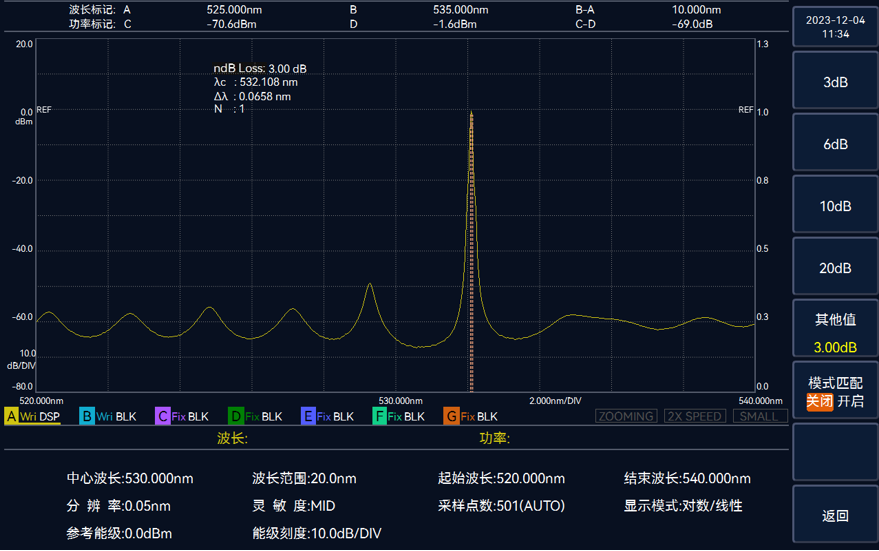 ndB損耗法測試中心波長和(hé)光譜(pǔ)帶寬