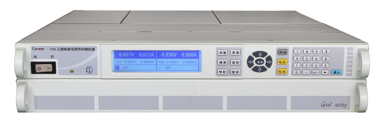 1763衛星帆板電源陣列模(mó)擬器(qì)具有IV曲線仿真輸出(chū)功能以及恒壓輸(shū)出、恒流輸(shū)出功能、串聯和並聯輸出功能。衛星帆板電源陣列模擬器集成兩個高精度功(gōng)率模塊,單模塊最大額定功率可達600W,整機最大輸出功率可達(dá)1200W。該設備結(jié)合IV曲線(xiàn)數字化生成方(fāng)案(àn)與功率調節智(zhì)能化等特點,采用電壓電流雙閉環技術,開關(guān)型功率調節技術,實現了利用衛(wèi)星帆板特征參數生成IV曲線高分辨率,大範圍調節,快速動態響應等電源輸出。廣泛應用於衛星電源係統測試,模擬太陽電池陣工作特性,檢查電源分(fèn)係統(tǒng)性能、功能及對外接口關係(xì)的兼容性;模擬太陽電池陣為衛星供電,是衛星電源分係統研製、生產、維護等階段常用的儀器。