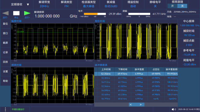 解調通(tōng)道可實現(xiàn)AM,FM,PM,CW,LSB,USB,ISB,PULSE,IQ實時解調