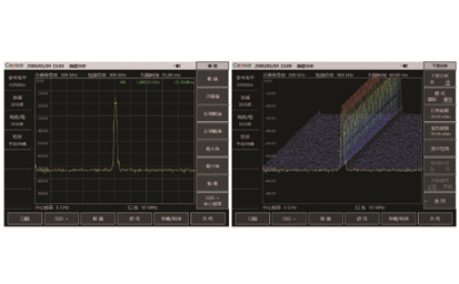4957B/D/E/F射頻/微波綜合測試儀係列頻譜分析功能(頻(pín)譜分析、通(tōng)道功率、占用帶寬、鄰道功率比(bǐ)、頻率計(jì)數)頻率範圍為9kHz~6.5GHz、100kHz~18GHz/26.5GHz/40GHz,具有頻率範圍覆蓋寬、靈(líng)敏度(dù)高、動態範圍大、相位噪聲好等特點,可(kě)實現快速、高效的信號偵測和測量。可同時顯示3條跡線,並且有標準、取樣、正峰值、負(fù)峰值、均值等不同的檢波器模式選擇(zé)。具有幹擾分析、頻譜圖、瀑(bào)布圖、數據記錄和回放功能。