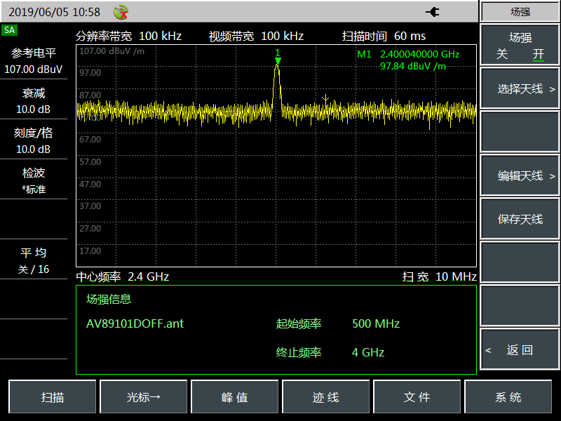 4957B/D/E/F射(shè)頻(pín)/微波綜合測試儀係列配合相應的測試(shì)天線還可進行場強測量,廣泛應用於空間電磁環境監測和無線電管理。支持用戶天(tiān)線,允許用戶定義自己的天線。