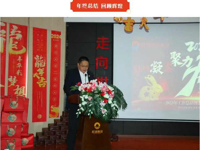 2024年(nián)2月5日,四川鑫桂湖防水保溫(wēn)節能科技有限公司召開2023年工作總結(jié)暨2024年工作部署會。桂湖集團董事長孫軍忠、鑫桂(guì)湖總經理劉鐵軍、鑫桂湖技術總監王靈、鑫(xīn)桂湖采購總監胡(hú)秀平等領導出席本次會議,鑫桂(guì)湖全體員工參加本次會議。