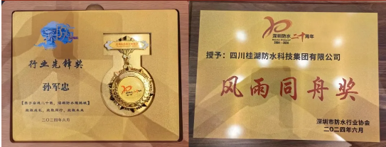 隨後慶(qìng)典(diǎn)表彰儀式上(shàng),桂湖防水集團榮獲“風雨同舟獎 ”、集團董事長孫軍忠榮獲個人“行業先鋒獎”榮譽稱(chēng)號(hào)。這(zhè)是深圳市(shì)防(fáng)水行業協會對董事長孫軍忠的認可,同(tóng)時也是對桂湖防水在行業的充分肯(kěn)定。