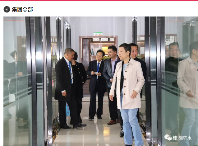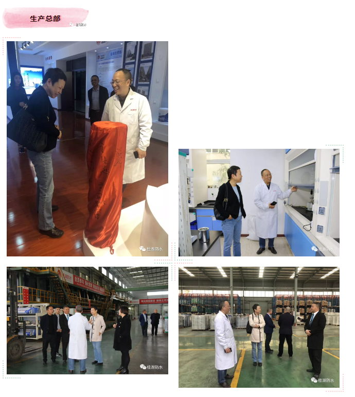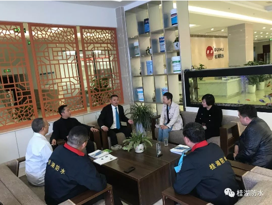 中國建(jiàn)築防水協會苗燕副會(huì)長及成都賽特防水材料有限責任公司史文俊總經理一行先後(hòu)到公(gōng)司總部、什邡生產基地進行(háng)了實地參觀考察。在參觀過程中,對桂湖防(fáng)水的集團實力、品(pǐn)質管控、環保要求等讚賞有加。