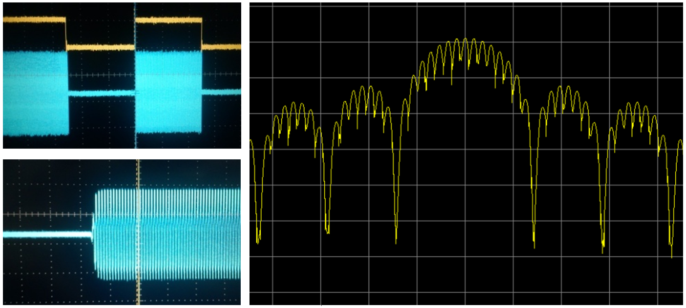 1431A手(shǒu)持(chí)式射頻信(xìn)號發生器均標(biāo)配(pèi)有高性能(néng)的脈衝調(diào)製功(gōng)能,調製(zhì)開關比(bǐ)大於60dB,最小脈寬100ns,支持門控、外部(bù)等多種觸發方式,為您進行脈衝信號模擬提供了靈活方(fāng)便的(de)解(jiě)決手段。