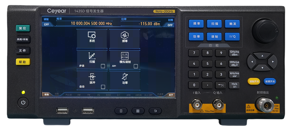1435A/B/C/D/F信號發生器的頻率範圍為(wéi)9kHz~3GHz/6GHz/12GHz/20GHz/40GHz,係(xì)列(liè)化最低頻率均低至9kHz,最高頻率高達40GHz,可滿足寬頻段(duàn)測試需求。
