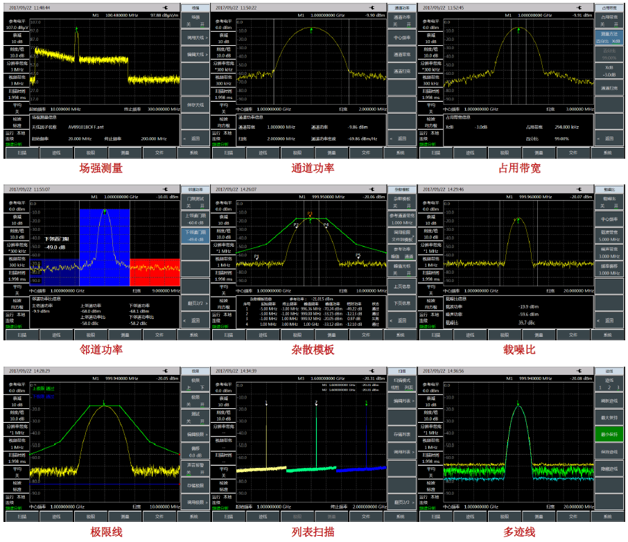 • 多種智能測(cè)量功能:場強測量、通道功率、占(zhàn)用帶寬、鄰道功率、音(yīn)頻解調、載噪比、雜(zá)散模板等