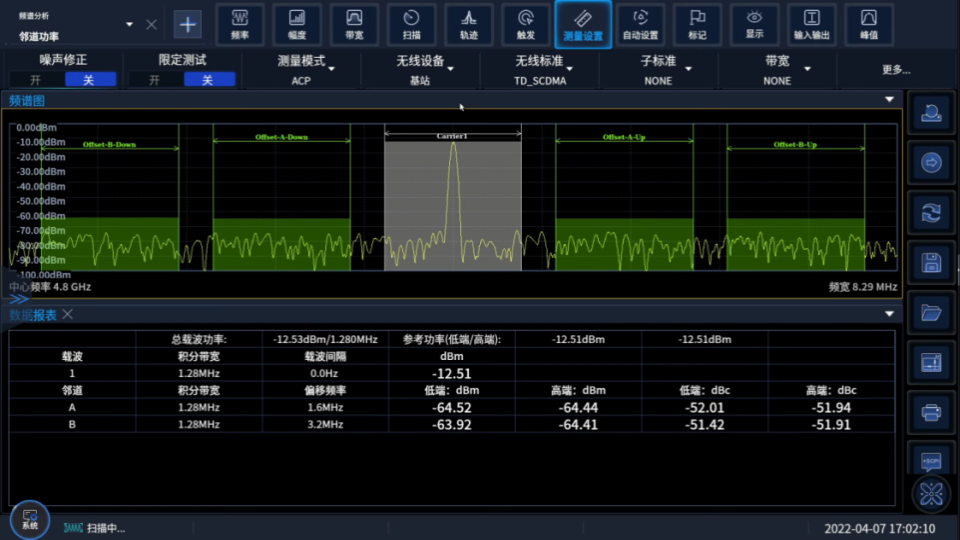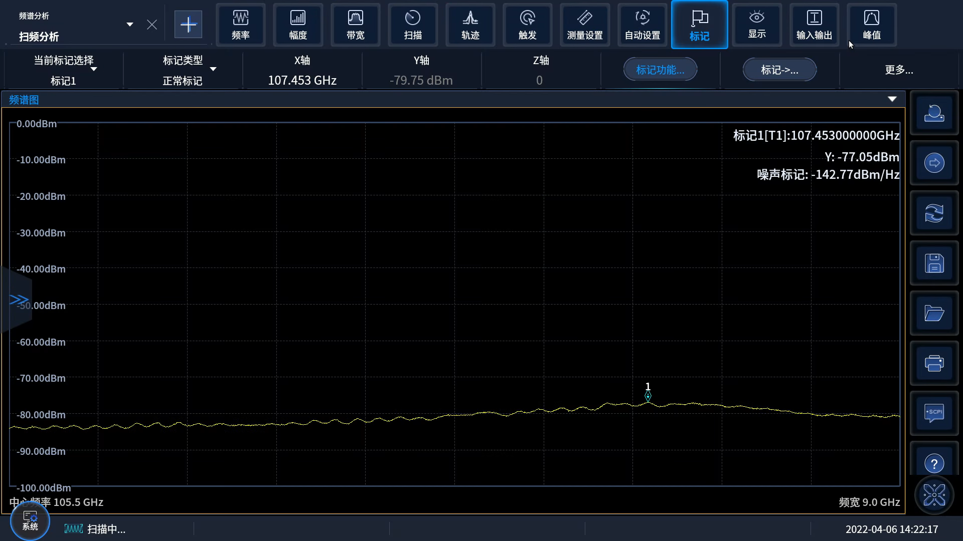 Ceyear 4082係列(liè)信號/頻譜分析儀支持掃頻和FFT兩種掃描類(lèi)型,掃描點數在101~120001之間任意可選,最長掃描時(shí)間16000s,零頻寬最短掃描時間1us;支持6條軌跡配置、6種檢波方式、3種平均類(lèi)型,具有噪聲標記、帶寬功率(lǜ)、功率(lǜ)譜密(mì)度等豐富的標記測量功能,並支持(chí)軌跡統計、軌跡自動保存和調用等;支(zhī)持曆史軌跡的瀑布(bù)圖顯示,可保存10000幀的(de)瀑布圖軌跡,清晰展現信號頻譜變化規律;具備占用帶(dài)寬、鄰/信道功率、功率統計、突(tū)發功率、諧波失真、三階交調、雜散發射、頻譜發射模板等一鍵(jiàn)功能,可提供更全麵、細致的分析結果。