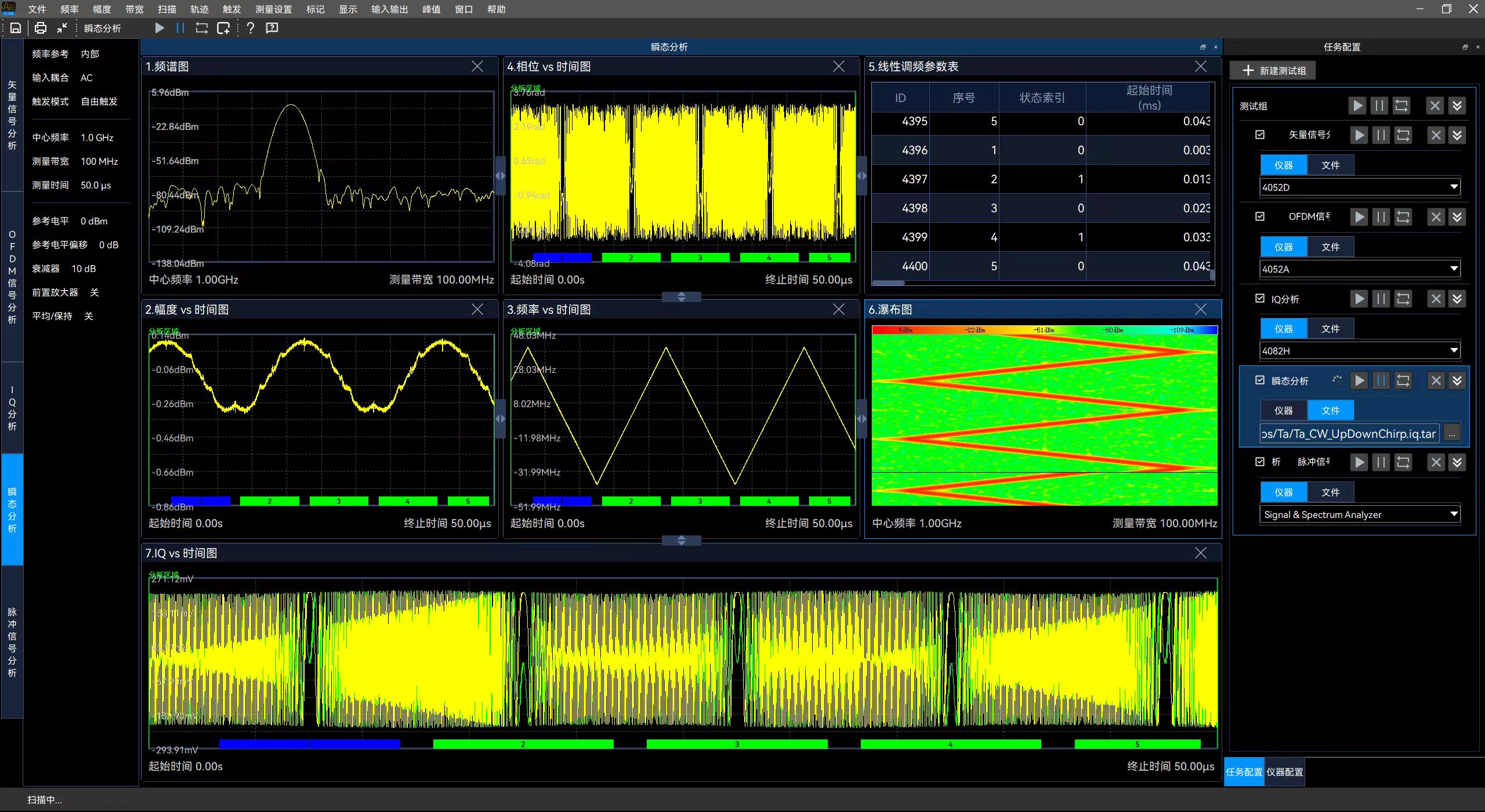 通用信號分析:支持矢量信號分析、誤碼率(lǜ)測(cè)試、多調製分析(DVB-S2X)、脈衝信號分析(xī)、瞬態分析、跳頻信號分析、FMCW 信號分析、模擬解調、OFDM信號分析等多種通(tōng)用信號分析功能。