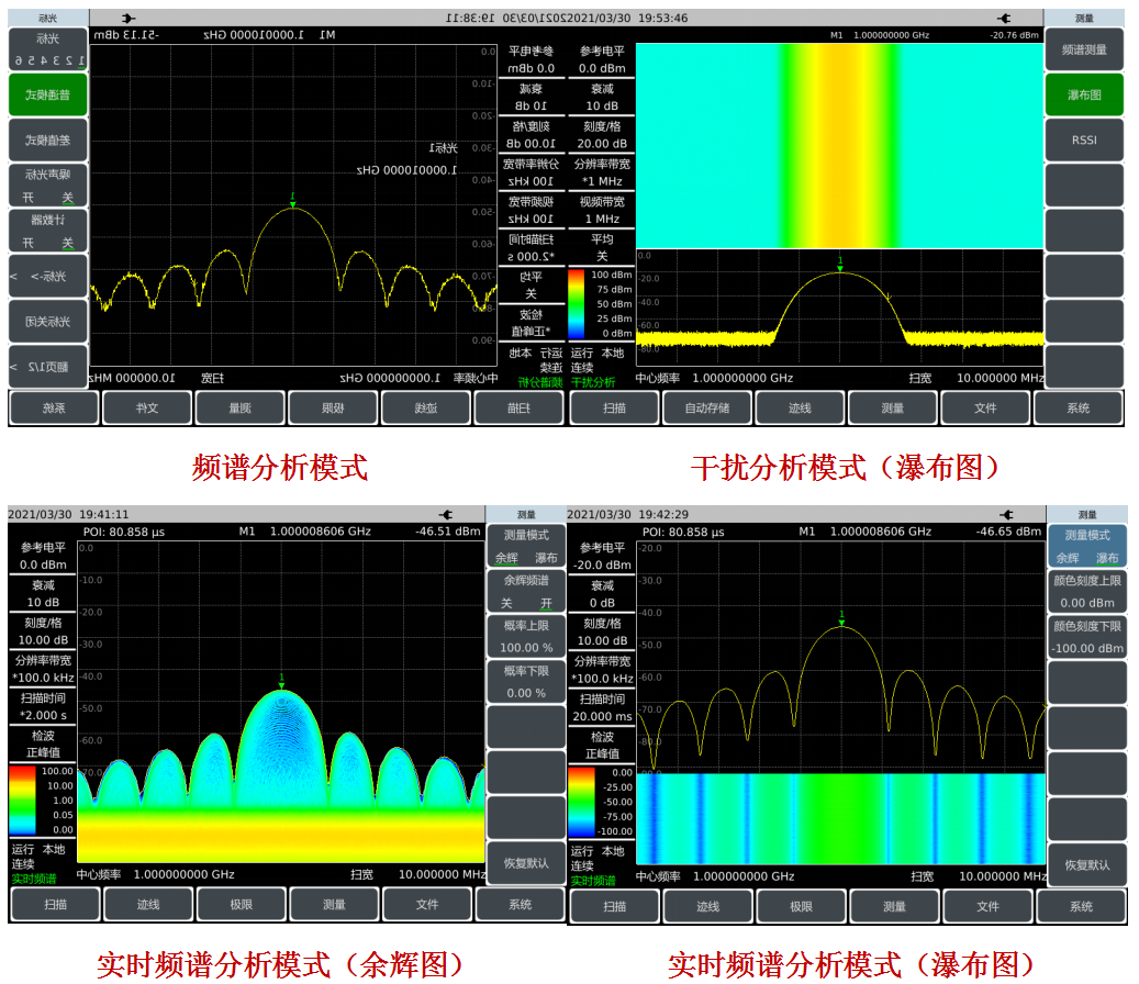 支持數字餘輝頻譜和瀑布圖兩種顯示模(mó)式(shì)
