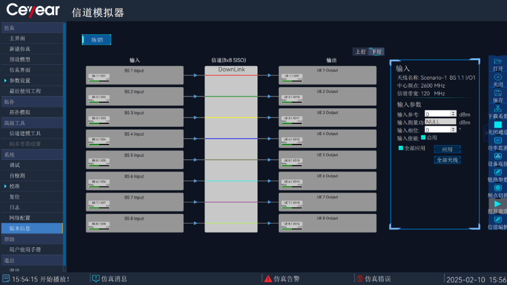 通道收發(fā)頻率、功率等參數直觀顯示,並配有相應的物理連接示意圖,方便用(yòng)戶連接操作。支持多種形式的(de)信道模型參數設置,包含用(yòng)戶自定義、標(biāo)準信道模型、模型(xíng)文件導入等。
