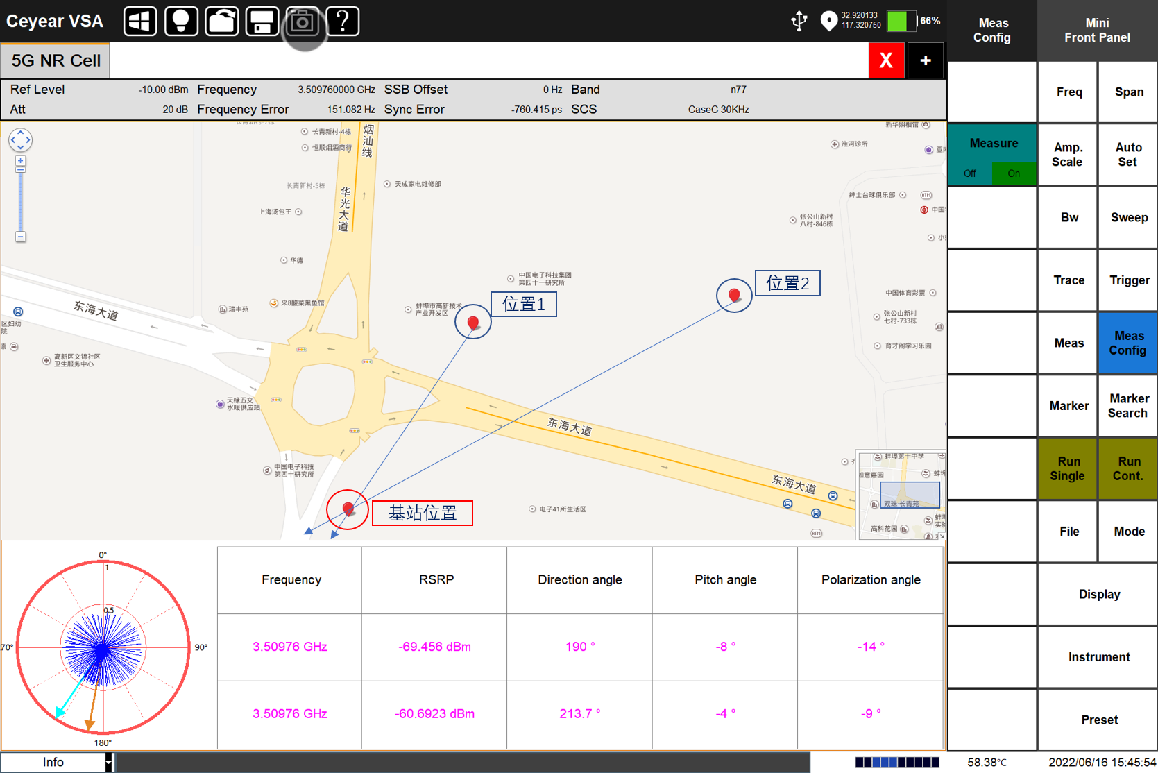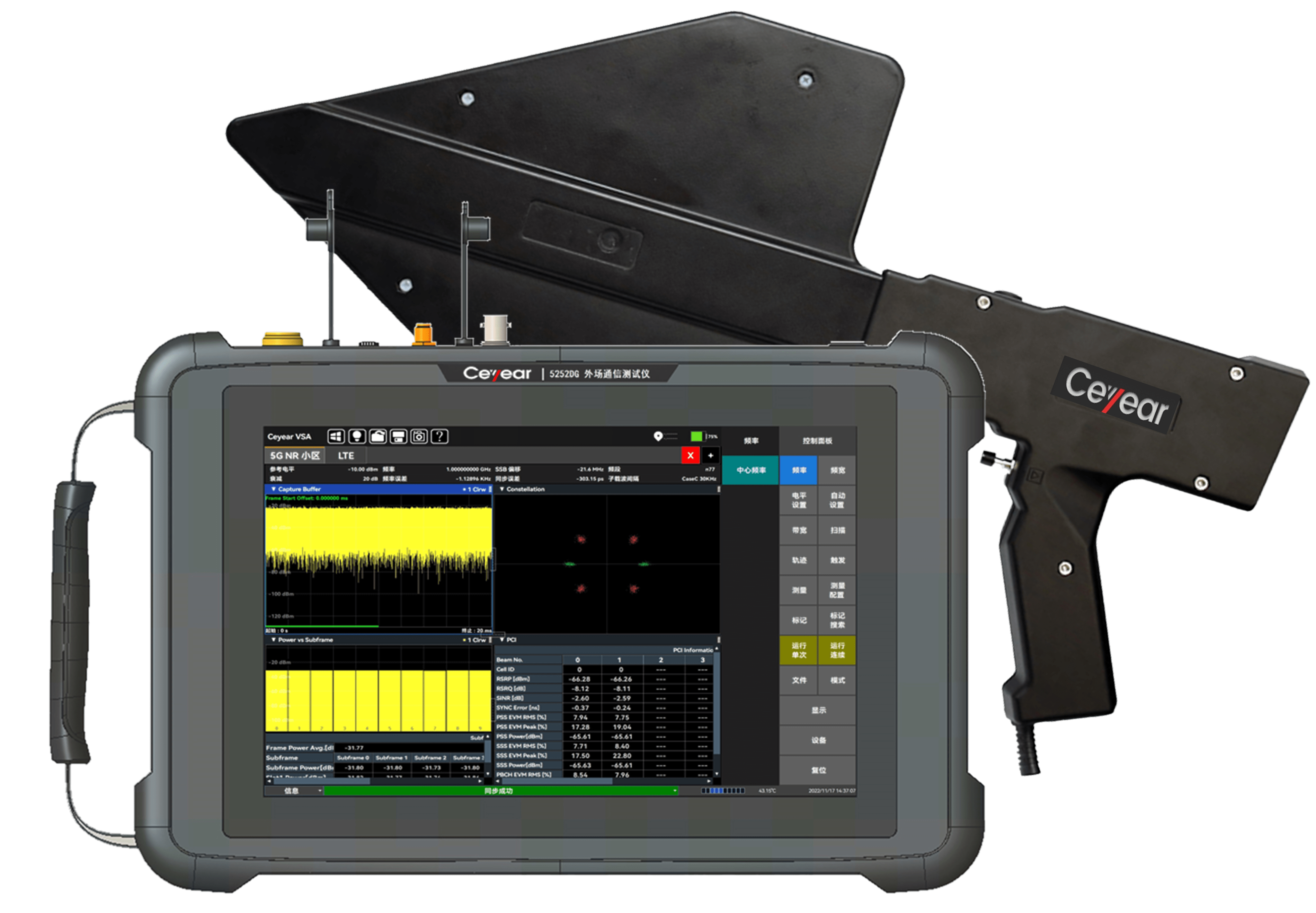 Ceyear 5252DG外場通(tōng)信測(cè)試儀在無線基站分析方麵具備豐(fēng)富的分(fèn)析能力。外場通信測試(shì)儀(yí)支持(chí)5G、4G的基站鎖定定位以及基站幹擾源的(de)地圖定位;支持(chí)5G、4G的室外/室內路測,結合高精度GPS定位地圖,標識每(měi)個測量地(dì)點的小區ID、RSSI、RSRP等參數,可(kě)進行信號的室分測試;外場(chǎng)通信測試儀具備5G NR多波(bō)束分析能力,支(zhī)持8個Beam ID同時解調(diào),提供小區ID、SS-RSRP、SS-RSRQ、SS-SINR功率(lǜ)指標、SSB星座圖和EVM等解調指標;外場通信測試儀(yí)包含LTE解調分析,提供4G信號分析(xī)、小區ID、通道(dào)功率、子幀(zhēn)功率(lǜ)及特殊(shū)子幀等解調指(zhǐ)標;外場通信測試儀支(zhī)持GSM信號解調,可進行通道功率、載幹比、頻率誤差及BSIC指標(biāo)的測試及顯示;此外,外場(chǎng)通信測試儀還支持多種調製信號分析(包括矢量信號的時域圖、星座圖、IQ信(xìn)息以及相關數值(zhí)參數)。